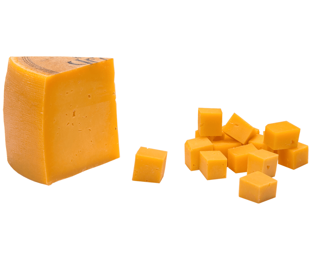 "Чеддер" - это, пожалуй, самый знаменитый из анлийских сыров. Это классический твердый сыр из пастеризованного коровьего молока с плотной, крошащейся структурой, имеющий светло-оранжевый цвет теста и характерный "черепаховатый" рисунок на срезе. Вкус "Чеддера" - сливочный, острый с легкой кислинкой и приятным ореховым послевкусием. Мы производим сыр по классической технологии, операющейся на английские традиции сыроварения. Как и другие твердые сорта сыра, "Чеддер" можно употреблять как самостоятельно, так и в качестве компонента и изюминки в различных блюдах (пицца, супы, сэндвичи, жюльены и т.д.). Сыр "Чеддер" отлично плавится. Эти качества сделали "Чеддер" эдаким "универсальным солдатом" на кухнях многих хозяек, а также самым продаваемым сортом сыра в мире.