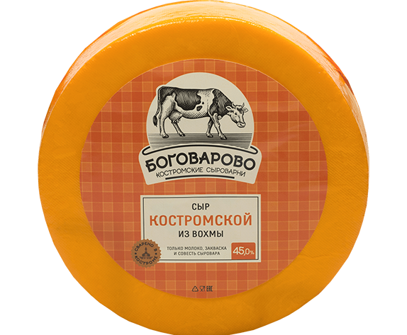 Сыр "Костромской", так хорошо известный в каждом доме на территории России и постсоветского пространства. Сыр изготавливается из пастеризованного коровьего молока с внесением молокосвертывающего сычужного фермента и закваски мезофильных молочнокислых бактерий. Этот полутвердый сыр с небольшим количеством натуральных глазков ровной округлой формы (образующихся в результате деятельности газообразующих молочнокислых бактерий), отличающийся эластичной текстурой и кислосливочным вкусом с легкой пикантностью. Этот сыр хорошо плавится и подходит как для бутербродов, так и для различных блюд.